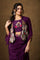 Make a bold statement in this three-piece purple ensemble. This set features a unique draped skirt with a high slit, creating a modern, flowing silhouette. The crop top is beautifully adorned with intricate floral embroidery and small sequins, which are also featured on the matching waist belt. A stylish jacket, with its mix of floral and abstract embroidery, completes the look, adding a perfect layer of sophistication. The lightweight fabric ensures you'll be comfortable and chic all evening.