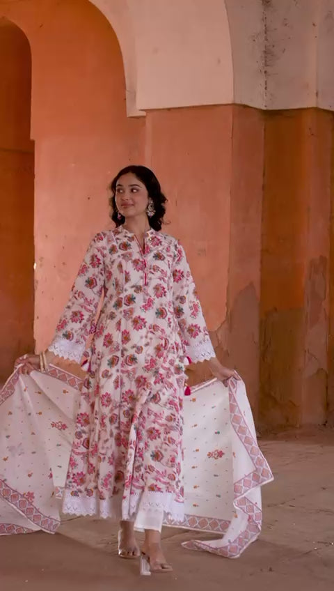 This three piece cotton suit features a Floral print design and  for a professional and polished look. Crafted from high-quality cotton, this suit is comfortable and breathable, making it perfect for all-day wear. Update your wardrobe with this stylish and versatile suit.